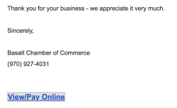 At the bottom of the invoice email, members should click the View/Pay Online button. No login is required. Clicking this button will open a web browser and direct the user to the landing section of the Billing page, where open invoices can be paid.
