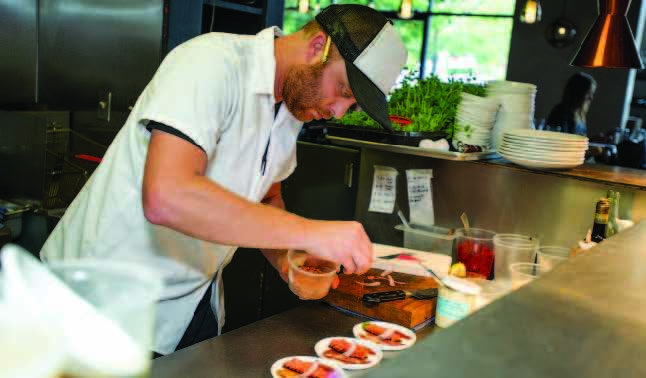 WHEN FREE RANGE Kitchen & Wine Bar first opened, a local food writer commented that tomatoes were not being served on that particular night — and a patron took note. “He looked at me like I had two heads,” co-owner Steve Humble said, with a laugh. “‘What restaurant doesn’t have tomatoes?’” the guy asked. Humble explained that Free Range didn’t have any because tomatoes weren’t in season. Another strange look prompted further elaboration: “Well, we can get tomatoes right now, but they’re typically from Mexico, they have no sugar content, no flavor, they’re hard as a rock, they’re just not that good,” Humble said. “If we can’t do it right, we’re not gonna do it.” It’s a mantra much of the Basalt restaurant community has similarly embraced. From the fresh, locally sourced fare at restaurants such as Free Range to the handcrafted spirits at Woody Creek Distillers to purveyors and companies like Green Pastures Country Farm, Rock Canyon Coffee, Two Leaves and a Bud, ACES at Rock Bottom Ranch and others, Basalt has embraced the national farm-totable movement at all levels. “When we founded Woody Creek Distillers, we knew we wanted to make nothing but the finest craft spirits, each with a unique taste and character that was true to the origins of that spirit,” said operating partner Mark Kleckner. “It’s a standard we hold ourselves to every day. It’s why we grow and harvest some of our ingredients ourselves, like the potatoes for our premium vodka. It’s why we only source our grains from trusted Colorado farms, like the rye in our 100 percent rye mash whiskey.” Perhaps the best example of Basalt’s commitment to top-notch foodie culture is Skip’s Farm to Market. Recently opened in Downtown Basalt, this niche shop features togo food that nourishes; for example, a recent week’s menu included a Very Veggie Wrap (flour tortilla, spinach, tomato, carrot, cucumber and onion) and a Kale Salad made with curly kale, cucumber, bell pepper, radish, onion and cranberry. And the Skip’s concept rolls perfectly into Basalt’s hugely popular Basalt Sunday Market. Beginning June 17 and continuing through the end of September, the farmers’ market is a gathering place for locals and visitors as they seek out the freshest foods of the season. “It is a highlight of our summer Sundays — you can never go wrong with spending a morning at the